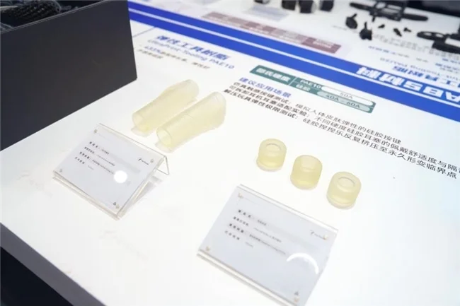 这些材料以其卓越的机械性能和耐久性,在保持传统工程性能的基础上,进一步优化了打印效率和后处理工艺,一定程度上也满足了工业级应用对材料的高要求。 新材料上市:软质成品树脂PAF10拓展应用边界 此次展会不仅是黑格科技展示高性能材料的舞台,更是其新材料UltraPrint-Production PAF10的上市节点。PAF10是一款软质成品树脂,46%断裂伸长率,反复弯折不易破损,52J/m缺口抗冲击,意外摔落不易断裂,1.6%吸水率,久置不易开裂,非常适用于“纤细结构多的微缩模型、比例模型、手办服饰/头发、较大变形结构原型、(键盘帽、按钮、瓶子、汽车内饰、配件)等应用。该款材料的推出标志着黑格科技在材料研发领域的又一重大突破,进一步丰富了其3D打印材料矩阵,为用户提供了更多选择。